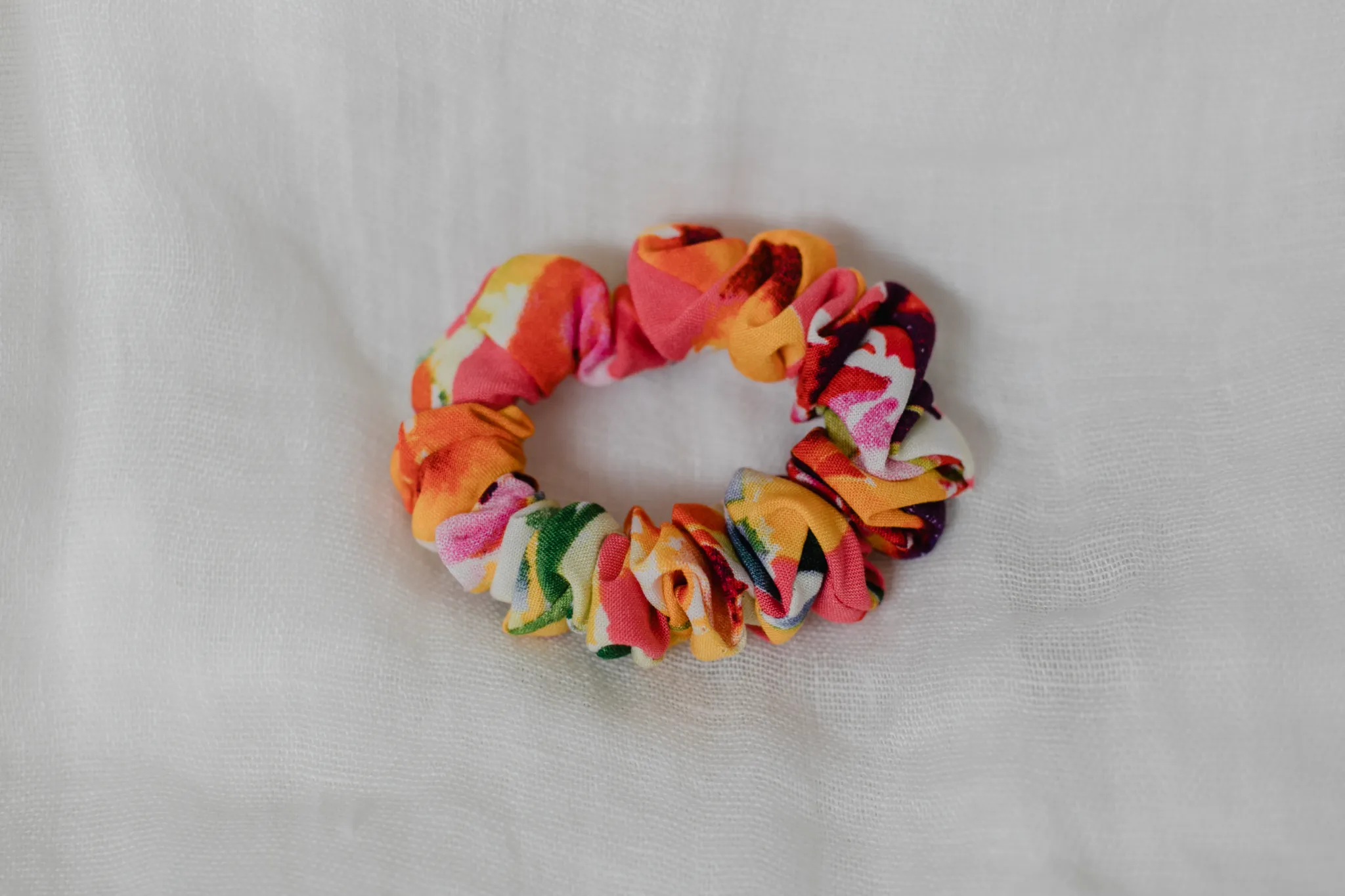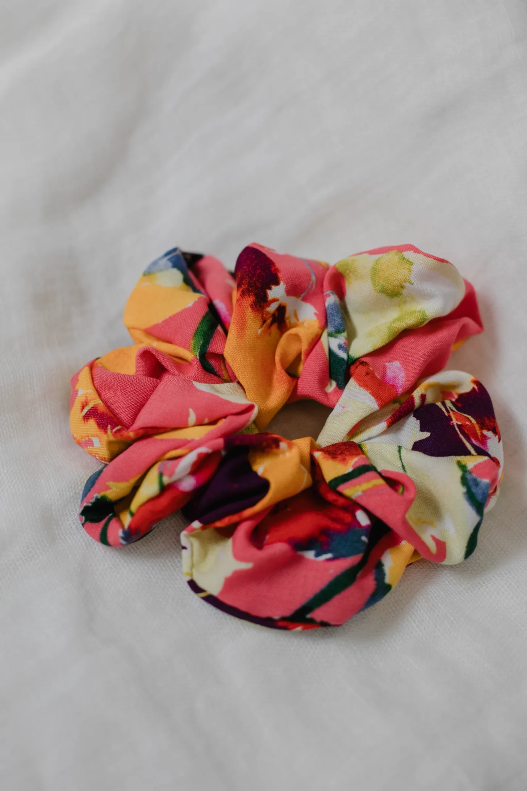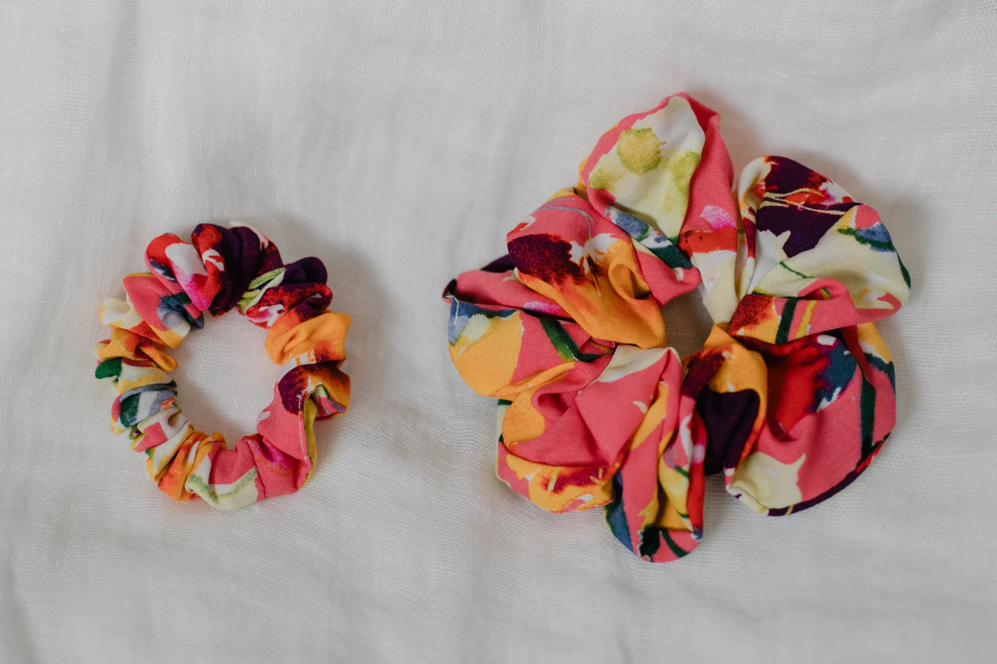 Wiskozowa gumka scrunchie różowe kwiaty – ta sama tkanina co sukienka Elena flower power