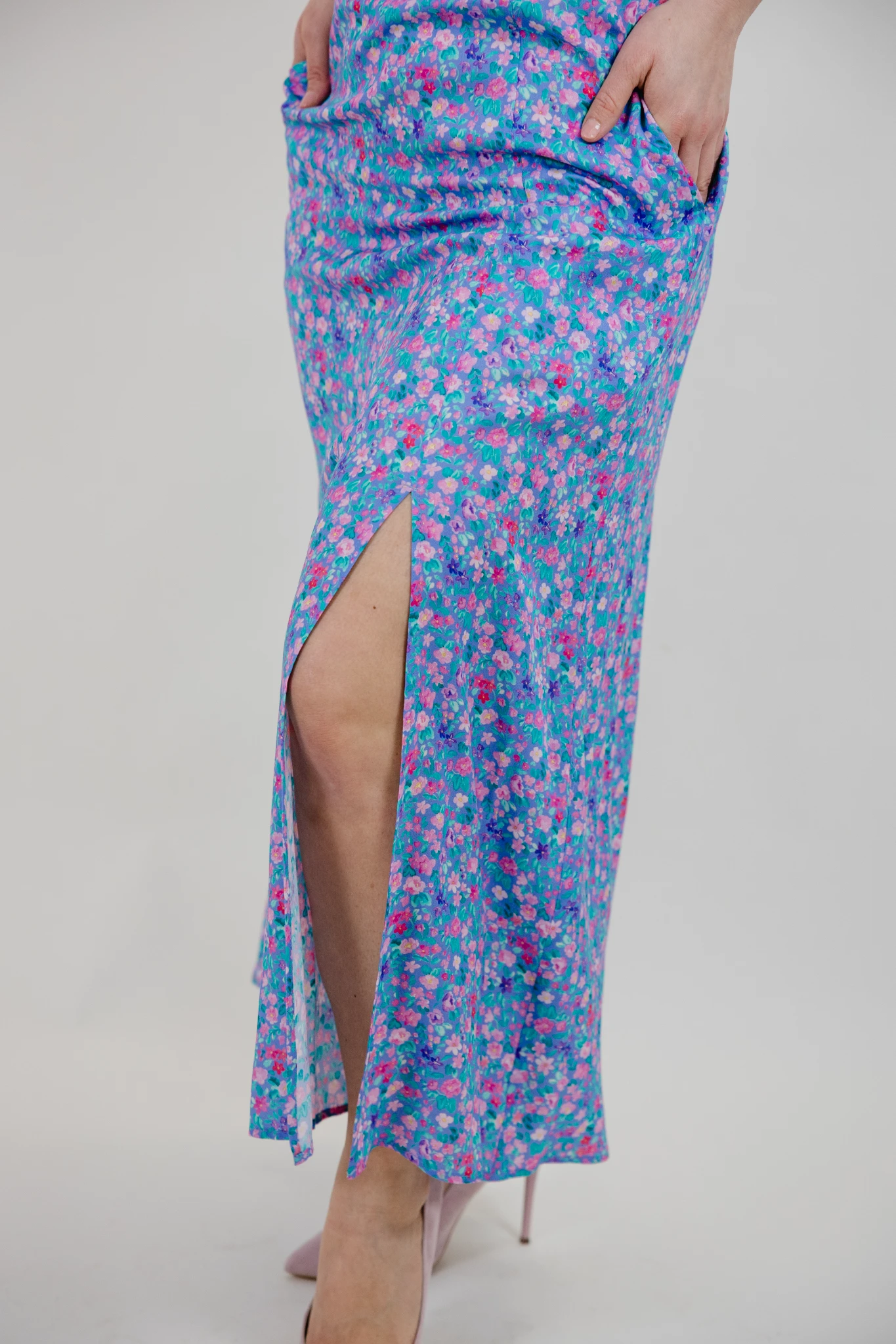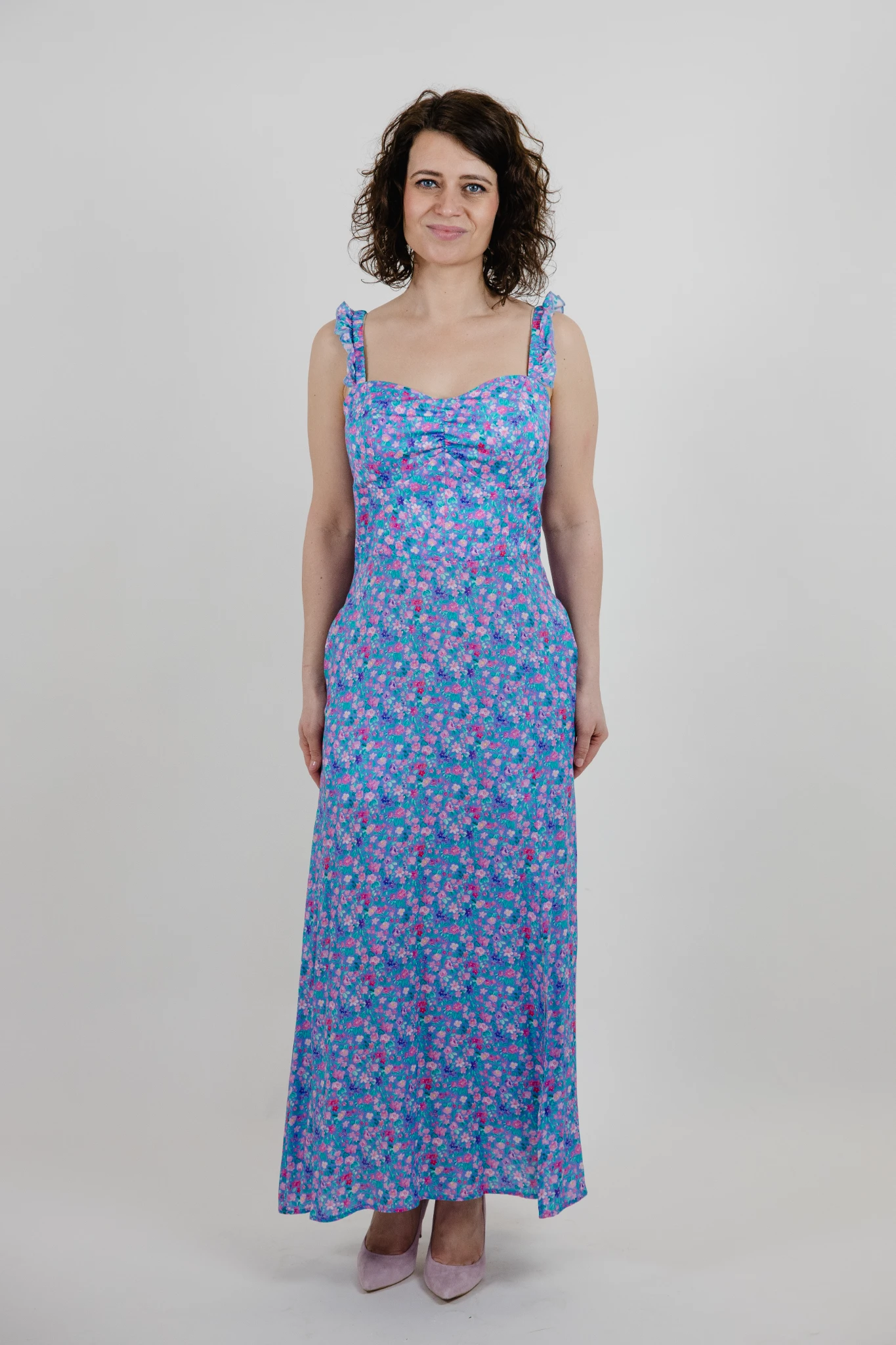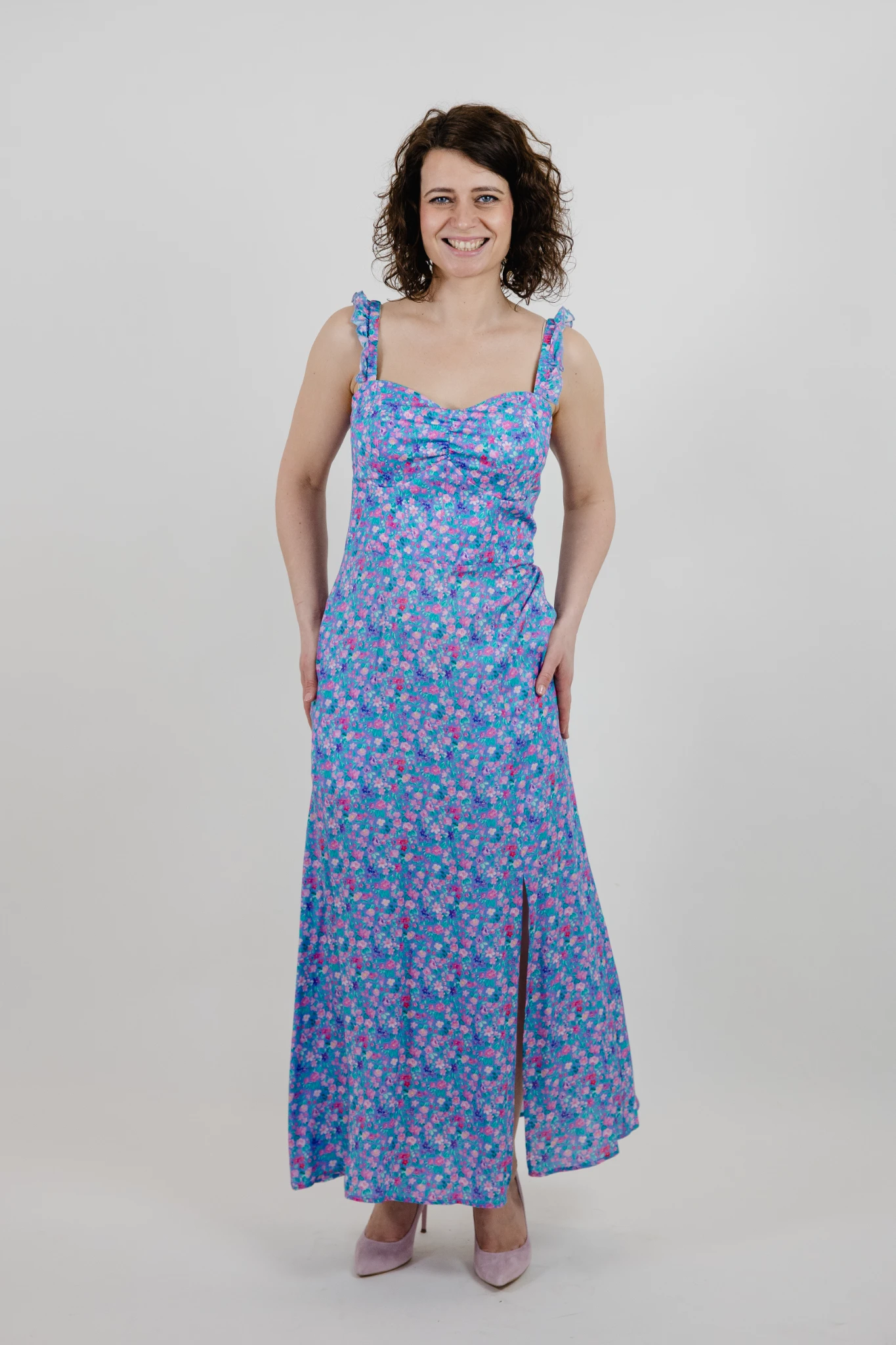 Lekka i romantyczna, kobieca sukienka z dziewczęcą nutką słodkości, pięknie układa się podczas chodzenia. Eloise to długa i zwiewna sukienka w drobne malowane kwiaty w kolorze fioletowym i różowym na fioletowym tle.